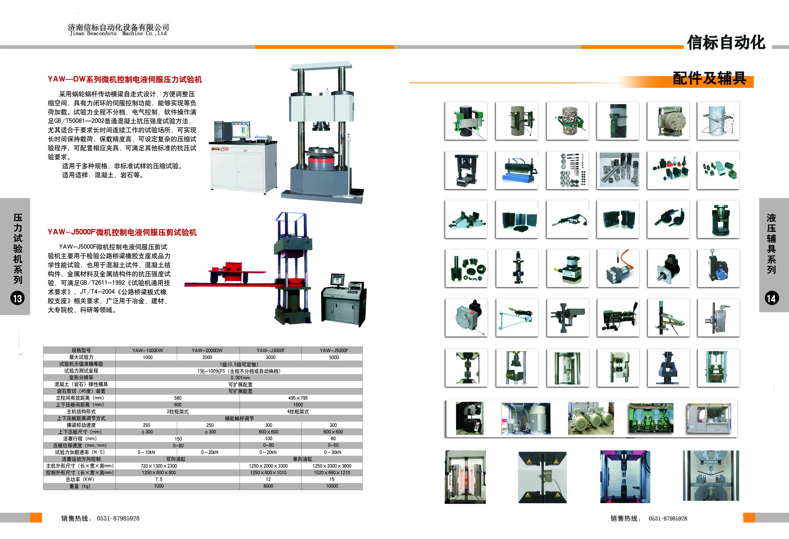 濟南信標自動化設備有限公司主要生產:動靜態萬能疲勞試驗機,接骨板彎曲試驗機,縫合線拉伸疲勞試驗機,髖膝關節磨損試驗機,電子萬能試驗機、液壓萬能試驗機、巖石三軸、四軸,電液拉力試驗機,材料試驗機,高低溫蠕變,高低頻疲勞,拉伸、扭轉、杯突等二十多個系列兩千多個的品種。