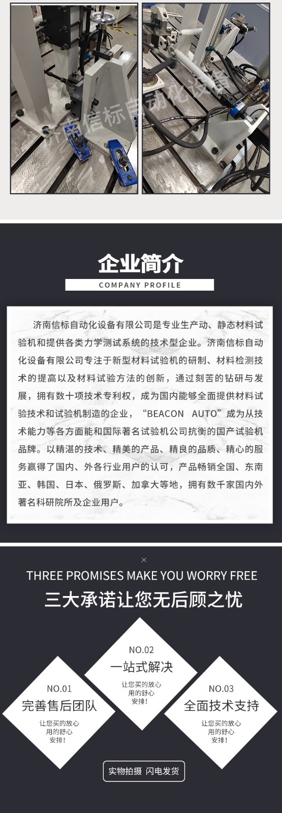 濟南信標自動化設備有限公司主要生產:動靜態萬能疲勞試驗機,接骨板彎曲試驗機,縫合線拉伸疲勞試驗機,髖膝關節磨損試驗機,電子萬能試驗機、液壓萬能試驗機、巖石三軸、四軸,電液拉力試驗機,材料試驗機,高低溫蠕變,高低頻疲勞,拉伸、扭轉、杯突等二十多個系列兩千多個的品種。