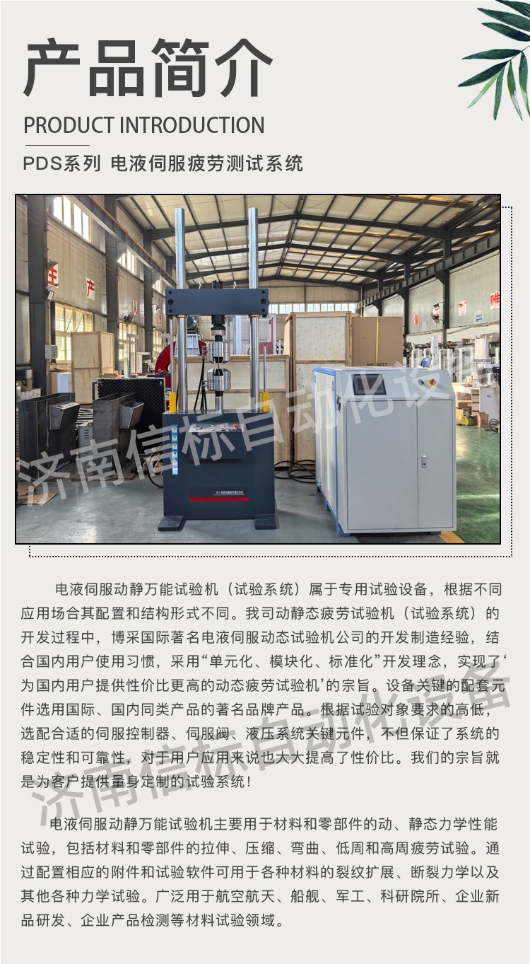 濟南信標自動化設備有限公司主要生產:動靜態萬能疲勞試驗機,接骨板彎曲試驗機,縫合線拉伸疲勞試驗機,髖膝關節磨損試驗機,電子萬能試驗機、液壓萬能試驗機、巖石三軸、四軸,電液拉力試驗機,材料試驗機,高低溫蠕變,高低頻疲勞,拉伸、扭轉、杯突等二十多個系列兩千多個的品種。