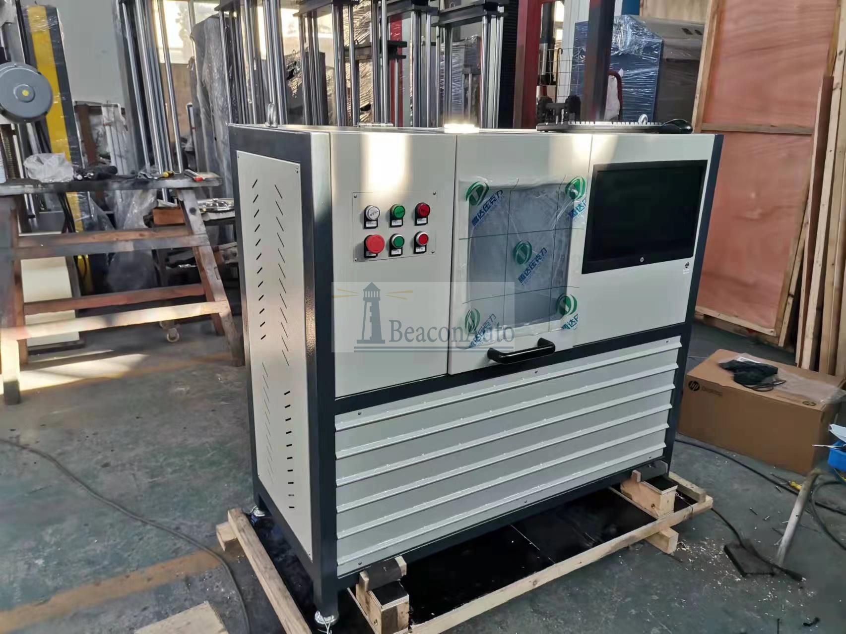 5) 在試樣工作部分的爐膛內(nèi)溫度均勻度不大于 15℃。 6) 配有1 路專用測溫通道以方便用戶使用。 7) 爐內(nèi)徑向移動距離:15mm 9. 配有觸摸屏操作及顯示面板用于完成所有控制參數(shù)的設(shè)置、所有測量數(shù)據(jù)的顯示及所有的試驗操作;配有與計算機通訊的網(wǎng)絡接口,當選配計算機時,可實現(xiàn)計算機對單臺設(shè)備的測控或?qū)Χ嗯_設(shè)備的組網(wǎng)測控;試驗周次可以任意設(shè)定,達到設(shè)定值可自動停機并具有掉電保護功能。 10. 前后夾具均采用彈性錐套夾持試樣方式,實現(xiàn)精密配合。 11. 具有完備的保護功能,如斷電保護、馬達過流保護、試樣破斷自動停機保護、等,設(shè)備裝有透明防護罩,試驗過程可無人值守。 12. 當配置計算機時可對單臺試驗機或多臺試驗機進行集散式測控。計算機以WIN10為工作平臺,采用虛擬面板操作方式,界面清晰、操作便捷、程序規(guī)范穩(wěn)健,完成對整個設(shè)備的管理控制、試驗數(shù)據(jù)的采集處理及存貯打印;全過程試驗數(shù)據(jù)、試驗狀態(tài)及每個試驗狀態(tài)所發(fā)生的時刻能自動存儲到計算機硬盤上;對于間歇性疲勞試驗,試驗過程數(shù)據(jù)可自動續(xù)接,以維護驗過程數(shù)據(jù)的完整性;試驗數(shù)據(jù)可報表打印,其格式也可轉(zhuǎn)換成常用的軟件文檔格式,如 Word、Excel 等。 13. 電源:三相五線 380VAC/50Hz 或單相三線 220VAC/50Hz 電源,電壓波動不大于±10%, 14. 最大功率:約 1kW (配置高溫爐時約 3.5kW)。 15. 適用標準: 1) JJG 652-2012 旋轉(zhuǎn)彎曲疲勞試驗機檢定規(guī)程 2) HB 5153-1996 金屬高溫旋轉(zhuǎn)彎曲疲勞試驗方法 3) HB 5152-1996 金屬室溫旋轉(zhuǎn)彎曲疲勞試驗方法 4) GB/T 4337-2015 金屬材料 疲勞試驗 旋轉(zhuǎn)彎曲方法 5) ISO 1143-2010 Metallic materials Rotating bar bending fatigue testing 6) GB/T 2107-1980 金屬高溫旋轉(zhuǎn)彎曲疲勞試驗方法。 7) GB 7733-87 金屬旋轉(zhuǎn)彎曲腐蝕疲勞試驗方法 四、設(shè)備主要配置 序號 | 名稱 | 型號規(guī)格 | 數(shù)量 | 備注 | 1 | 試驗機主機 | XWP-X6000 | 1臺 |